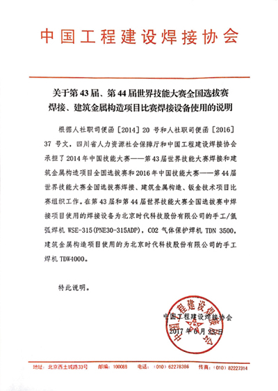 世界技(jì)能(néng)大(dà)賽全國(guó)選拔賽 "使用(yòng)焊接設備情況說(shuō)明(míng)